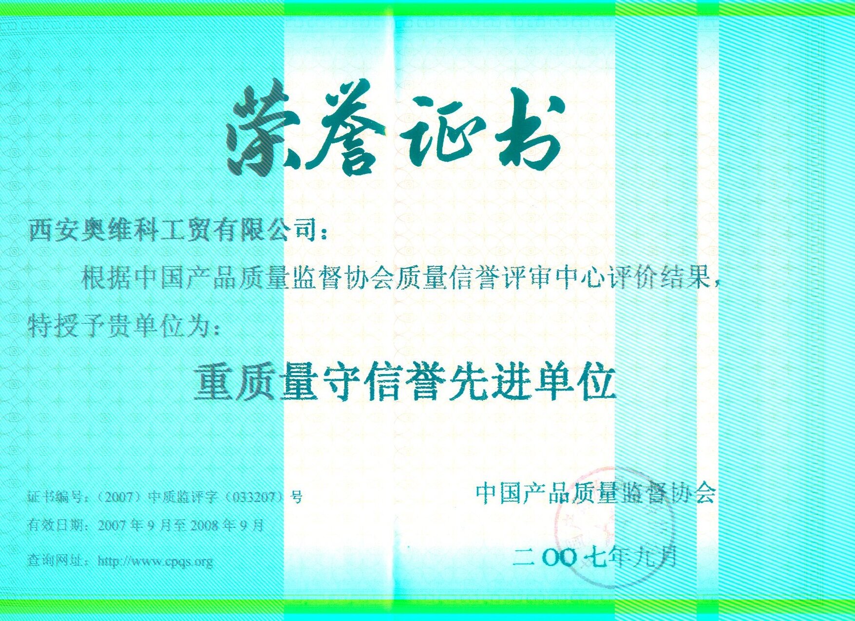 重质量守信誉先进单位