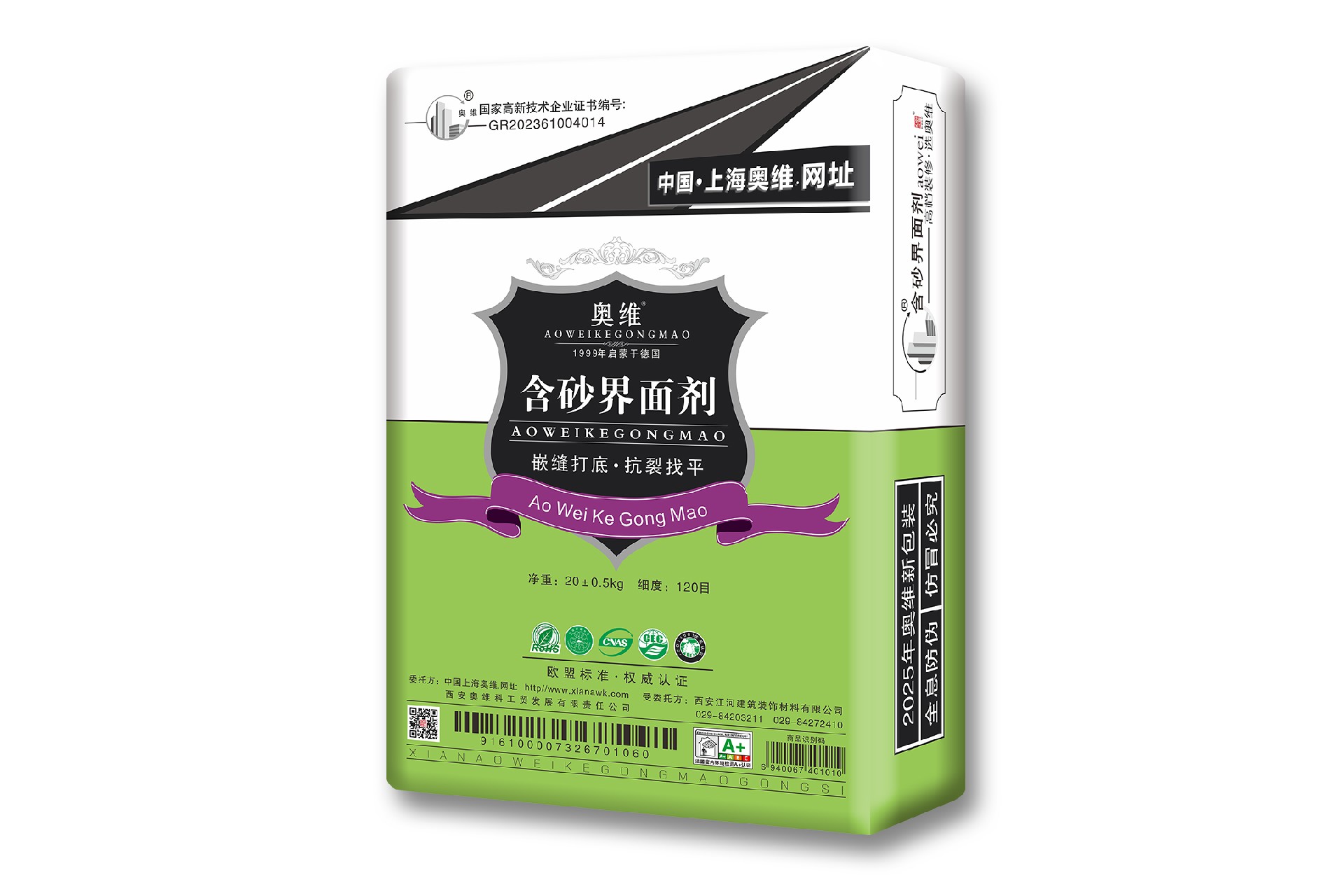 含砂型石膏界面剂是奥维公司腻子涂层套餐系列产品之一,它采用专利缓凝技术,添加柔性保水成膜胶料制成,可以在不降低石膏强度的前提下,将石膏的初凝时间延长30-90分钟,从而满足了大面积连续施工的要求。也是腻子涂层施工中理想的嵌缝、抗裂、基面初找平材料,尤其在保温层的处理上可直接替代传统工艺-石膏板起到高强抗裂作用,一般用在奥维腻子涂层工艺的第二层(**层是奥维封底抗裂剂)。